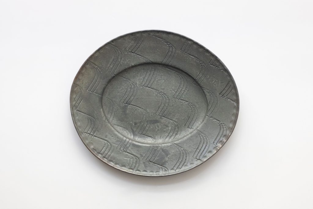 〈 河合竜彦-花器 大/青灰 玉緣紋樣橢圓邊皿 M/附蓋壺 L 〉