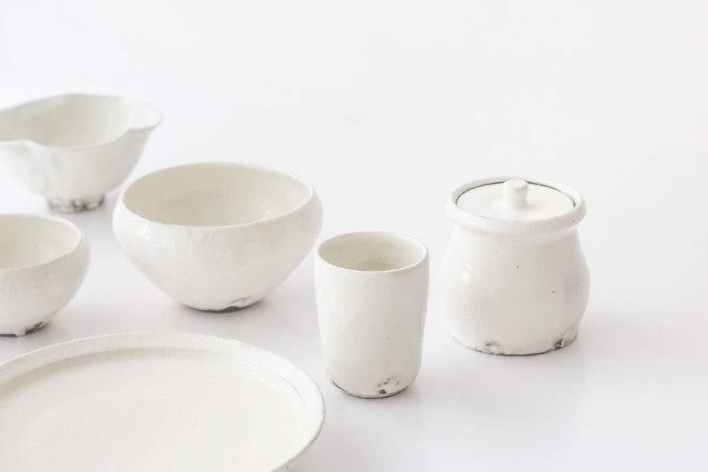 以粉引為中心展開的作品,作品潔白而透出泥土的氣息,質樸而安定。
