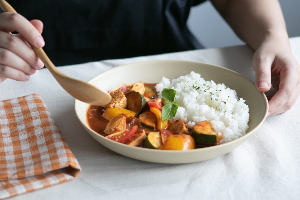 直徑22cm圓盤有一定的深度,作為主餐盤盛放炒飯、歐姆蛋、咖哩、義大利麵等各種料理,半磁器的材質可以對應微波爐、烤箱、洗碗機,是十分符合現代人使用習慣的日常食器