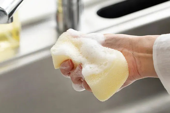 中川政七所研發的廚房海綿,選用高彈性聚氨酯材質,起泡力佳、容易沖洗,握感紮實又不費力,是許多使用者口中的「超級廚房海綿」。