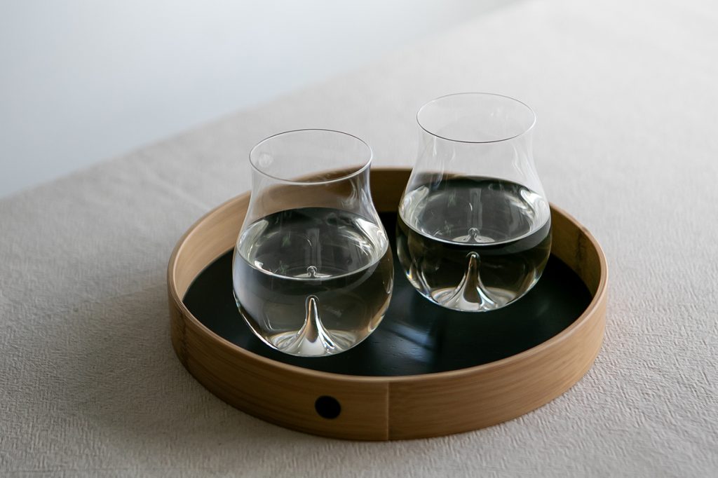 溫潤的竹材圍出一道低調的邊框,內層深色漆面讓器物與飲品自然成為視線的焦點,不論盛放清酒、茶水或簡單點心。日常使用時多了一份整齊的秩序感,宴客時端上桌,也讓器物之間的關係顯得更完整。